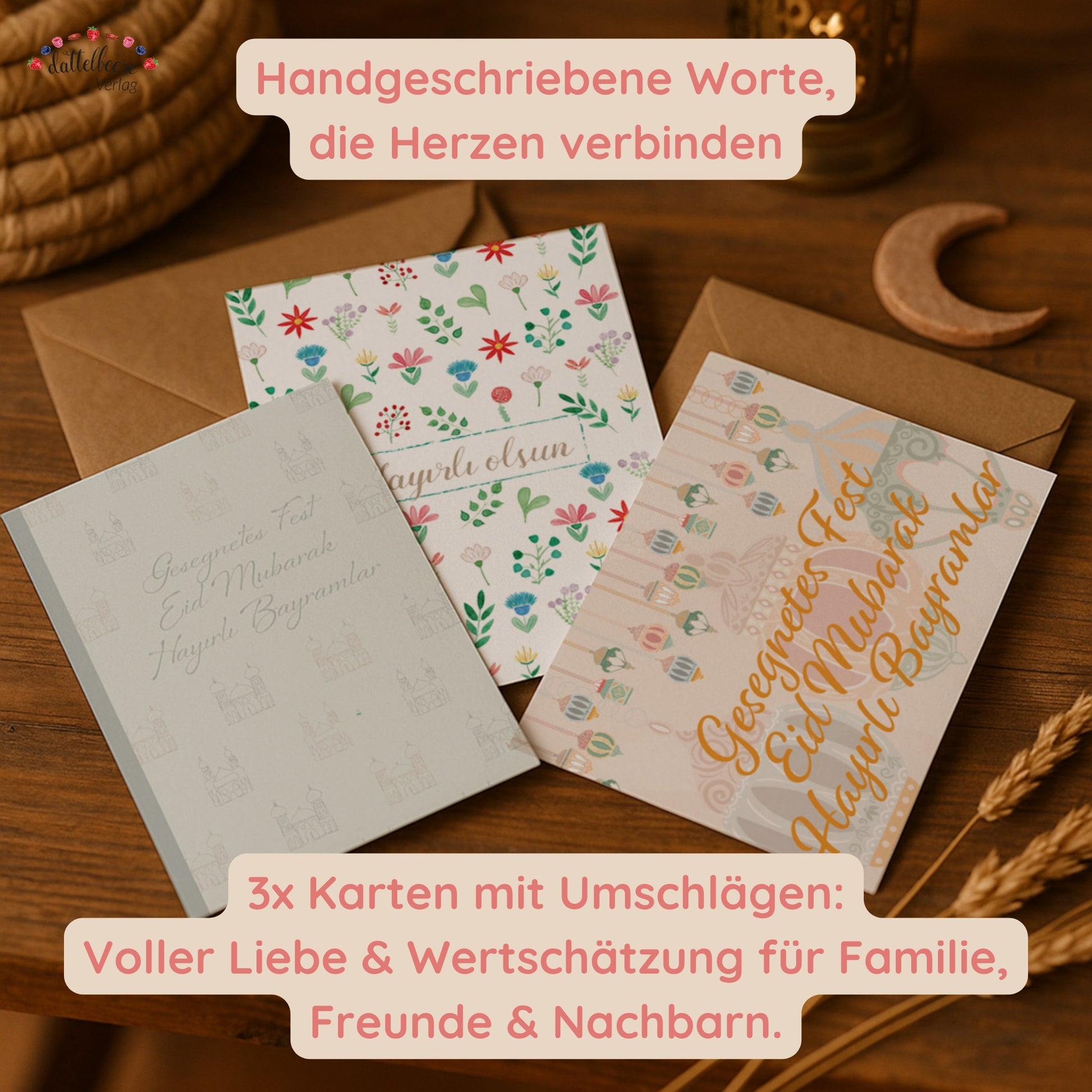 💌 3 Grußkarten mit Umschlag – Deutsch, Türkisch & Arabisch