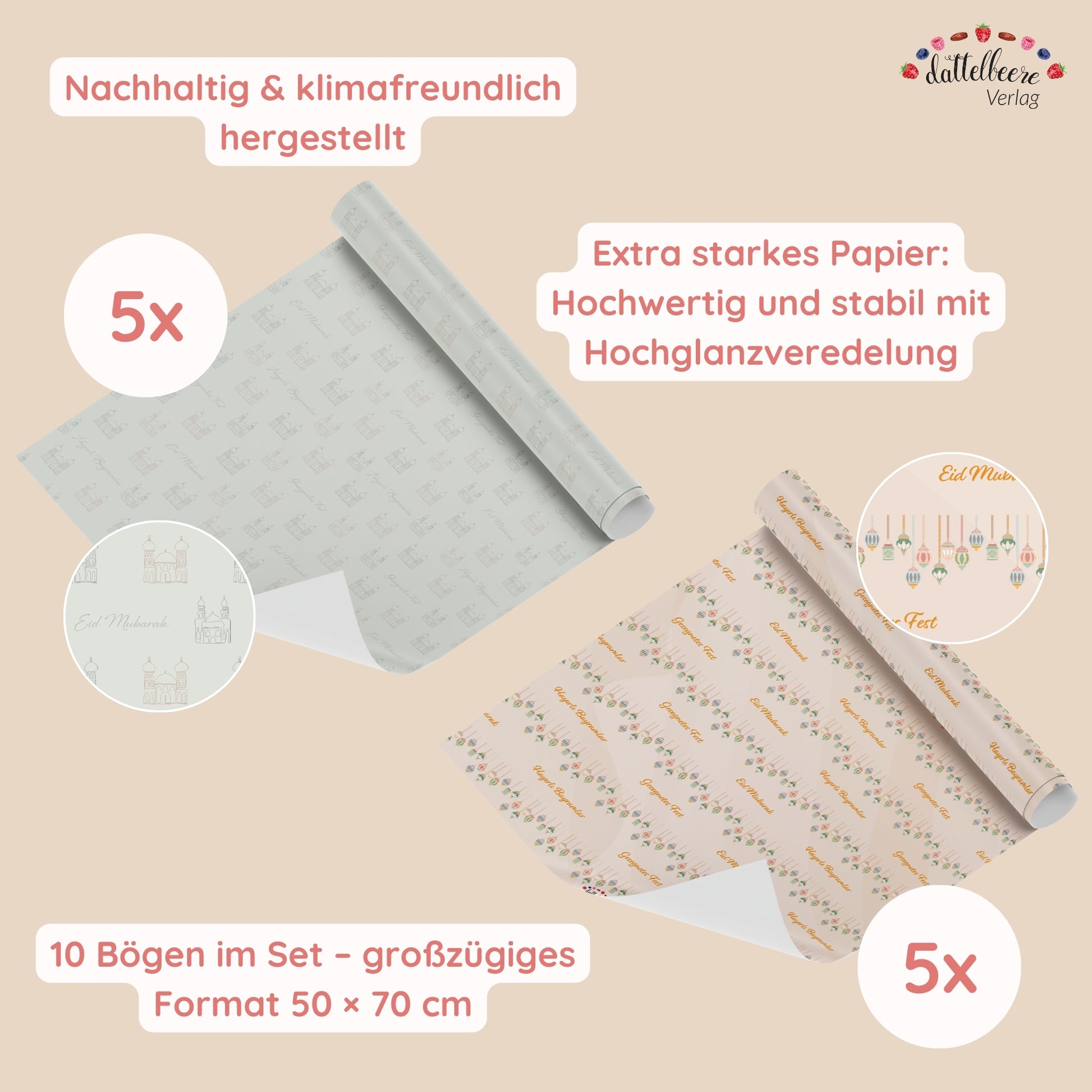 - 1 Geschenkpapier-Set "Ramadanfest" aus 5 Bögen (50cm x70cm)