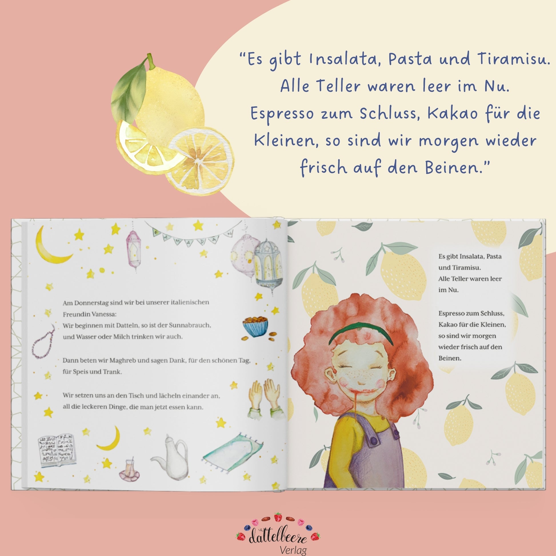 In poetischen Reimen und warmen Bildern nimmt das Buch Kinder mit auf eine internationale und kulinarische Reise durch den Ramadan. Es zeigt, wie vielfältig die Umma ist und macht dabei eines ganz deutlich: Allah hat uns verschieden erschaffen und genau das macht unsere Gemeinschaft so besonders. Unterschiede sind keine Trennung, sondern eine Einladung, voneinander zu lernen und einander kennenzulernen.