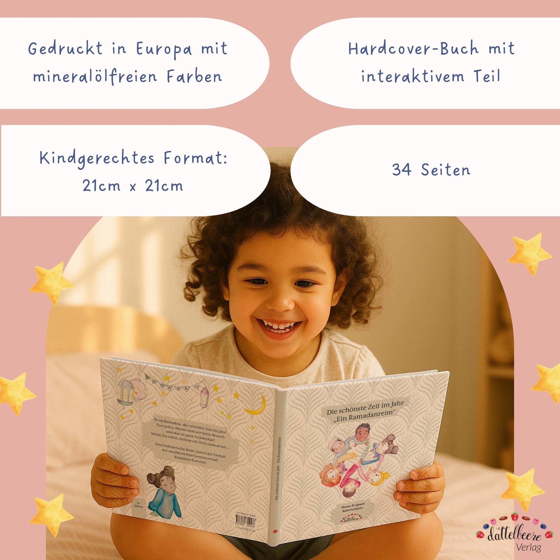 - 1 gebundenes Hardcover-Buch "Die schönste Zeit im Jahr - Ein Ramadanreim" im Format 21 cm × 21 cm mit 34 Seiten